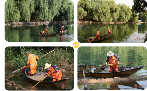 6月5日是世界環(huán)境日,在昆明滇池草海大觀河入湖河道,河道保潔員正在進行河面水草和漂浮物的打撈,作業(yè)船穿行在水清岸綠的河道,呈現(xiàn)出一幅美麗的生態(tài)景致。