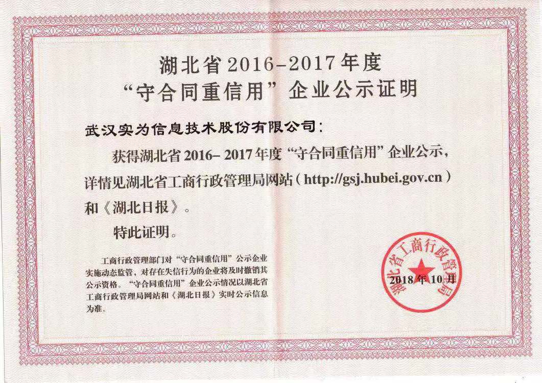 湖北省工商局,湖北省信用促進會于2018年3月22日發(fā)布《省工商局 省企業(yè)信用促進會關于開展湖北省第十四屆(2016—2017 年度)“守合同重信用”企業(yè)公示活動的通知》,