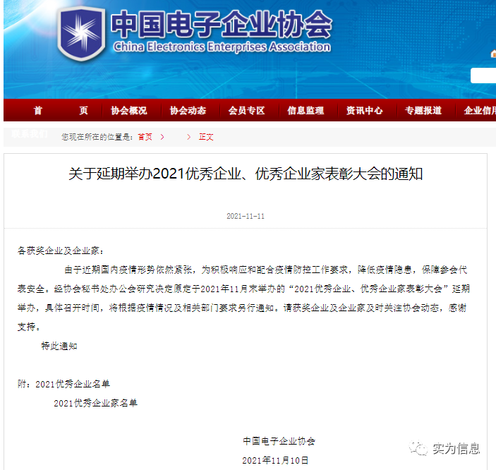近日,由中國電子企業(yè)協會舉辦,評選出“2021優(yōu)秀企業(yè)、優(yōu)秀企業(yè)家”榜單正式揭曉。我公司榮獲“2021年優(yōu)秀企業(yè)”獎項;法人范俐榮獲“優(yōu)秀企業(yè)家”稱號。在信息技術服務領域實為信息的服務再次得到權威認可。