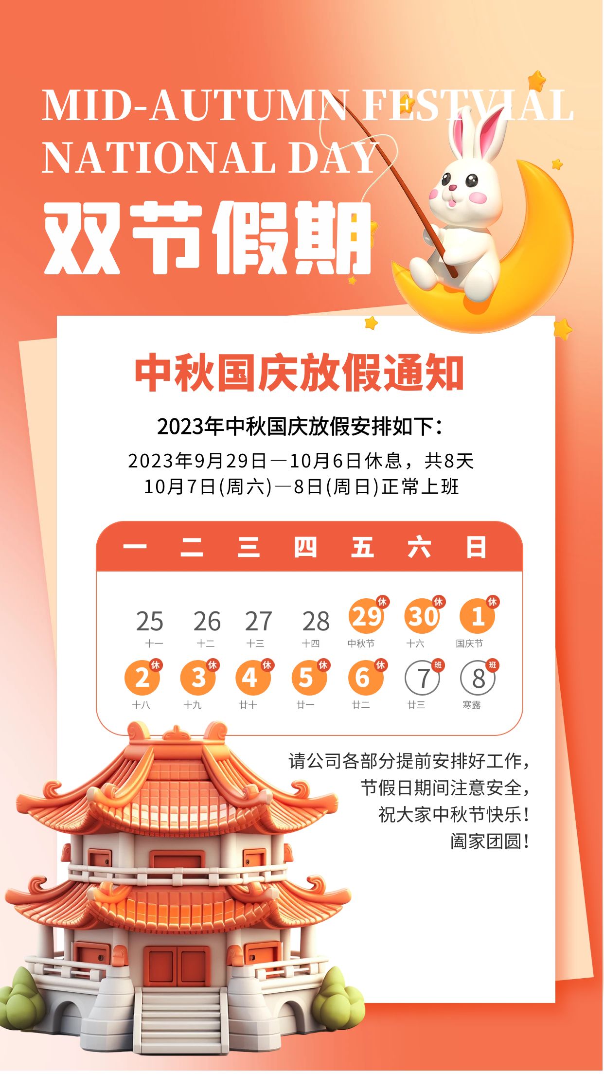 關(guān)于雙節(jié)放假安排通知