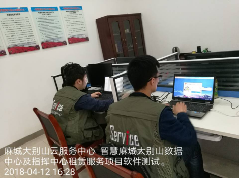 智慧麻城大別山數(shù)據(jù)中心及指揮中心租賃服務(wù)項目著眼于為智慧麻城的應(yīng)用提供基礎(chǔ)系統(tǒng),主要針對的是機房基礎(chǔ)環(huán)境租賃、網(wǎng)絡(luò)基礎(chǔ)環(huán)境租賃、云平臺租賃和安全交換平臺租賃,以及數(shù)據(jù)中心的數(shù)據(jù)收集、整理與應(yīng)用等業(yè)務(wù)服務(wù),以及實現(xiàn)部分條件成熟的應(yīng)用子系統(tǒng)功能的正常運行,并為項目下一階段建設(shè)做好應(yīng)用功能和技術(shù)上的預(yù)留。下圖為實為員工正在進行軟件測試。